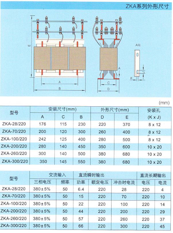 ZKA系列合闸电源用硅整流装置为发电厂、变电所、工矿企业和供电站高压断路器,直流电磁操作机构的合闸、分闸、电磁控制、继电保护、信号回路提 供直流电源。凡符合本产品标称值的感性负载或阻性负载,均可选用。
