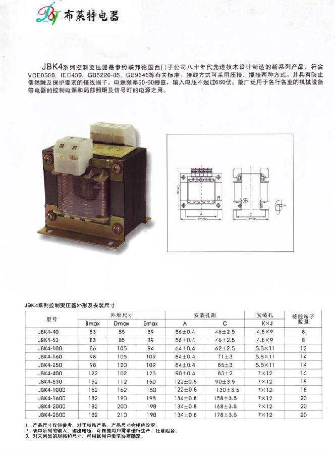 JBK4系列机床控制变压器